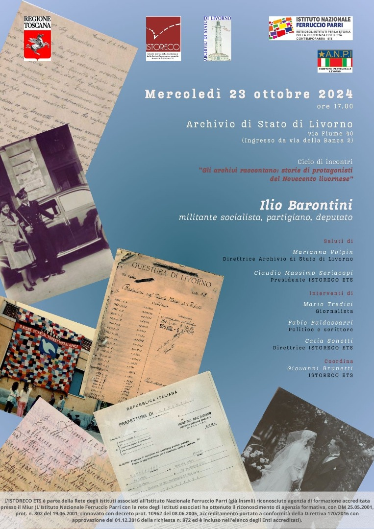 Mercoledì 23 ottobre prenderà il via un ciclo di incontri, a cadenza mensile, con approfondimenti storiografici e archivistici dedicato ai protagonisti della storia locale organizzato da ISTORECO in collaborazione con l'Archivio di Stato di Livorno dal titolo Gli archivi raccontano: storie di protagonisti del Novecento livornese.