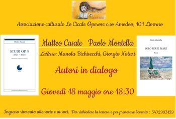 Per la serie Autori in dialogo, Matteo Casale e Paolo Montella conversano sui rispettivi volumi e sulla poesia nel giardino dell'associazione Le Cicale Operose.