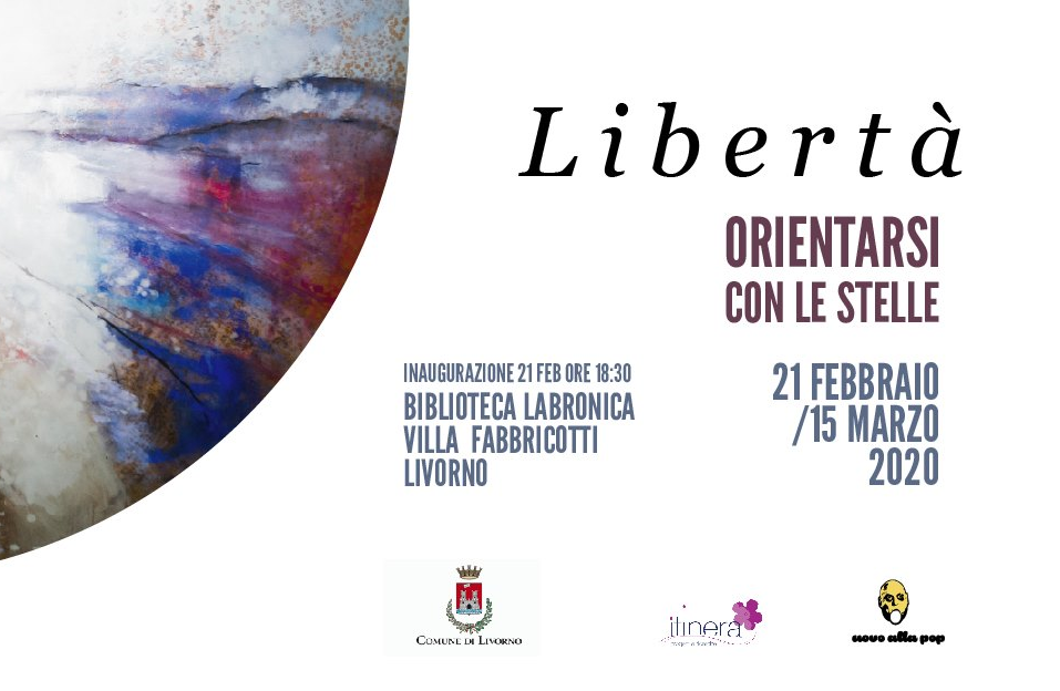 Nota in città per i famosi pesci (su tutti quello realizzato sul tetto del mercato ittico in Venezia, accompagnato dai versi della poetessa Viola Barbara “Lische Squame Coda Amore Libertà) Libertà prende in prestito il titolo della raccolta di poesie di Raymond Carver per dare inizio alla sua nuova personale. “Orientarsi con le stelle” è, appunto, una raccolta di poesie che usano un linguaggio quotidiano, intimo, che ci mettono nel ruolo di testimoni disarmati davanti alle presenze umane e i loro accadimenti. Pezzi di vita che astratti dal loro accadere formano una mappa per orientarsi, a patto che si sappia alzare gli occhi al cielo. Insieme a Carver, fonte d'ispirazione per questa mostra sono anche i testi di Astronomia antichi di fine Settecento, conservati nella biblioteca labronica; testi che hanno guidato antichi marinai attraverso quello scuro mistero che a volte è il mare. La pittura, come la poesia, a volte è l'unico linguaggio a cui rivolgersi per avere questa carta stellare, per avere la sensazione di potersi orientare in questo disegno al rovescio in cui siamo immaginati. Libertà presenterà le sue nuove opere su lamiera di ferro ossidata, opere dedicate a visioni cittadine, impresse sul ferro con acqua di mare o semplicemente abbozzate utilizzando come pennelli materiali raccolti casualmente camminando sul porto. Saranno esposte anche alcune opere del passato, come i famosi pesci o le finestre incise che Libertà ha prodotto dal 2010 a oggi.