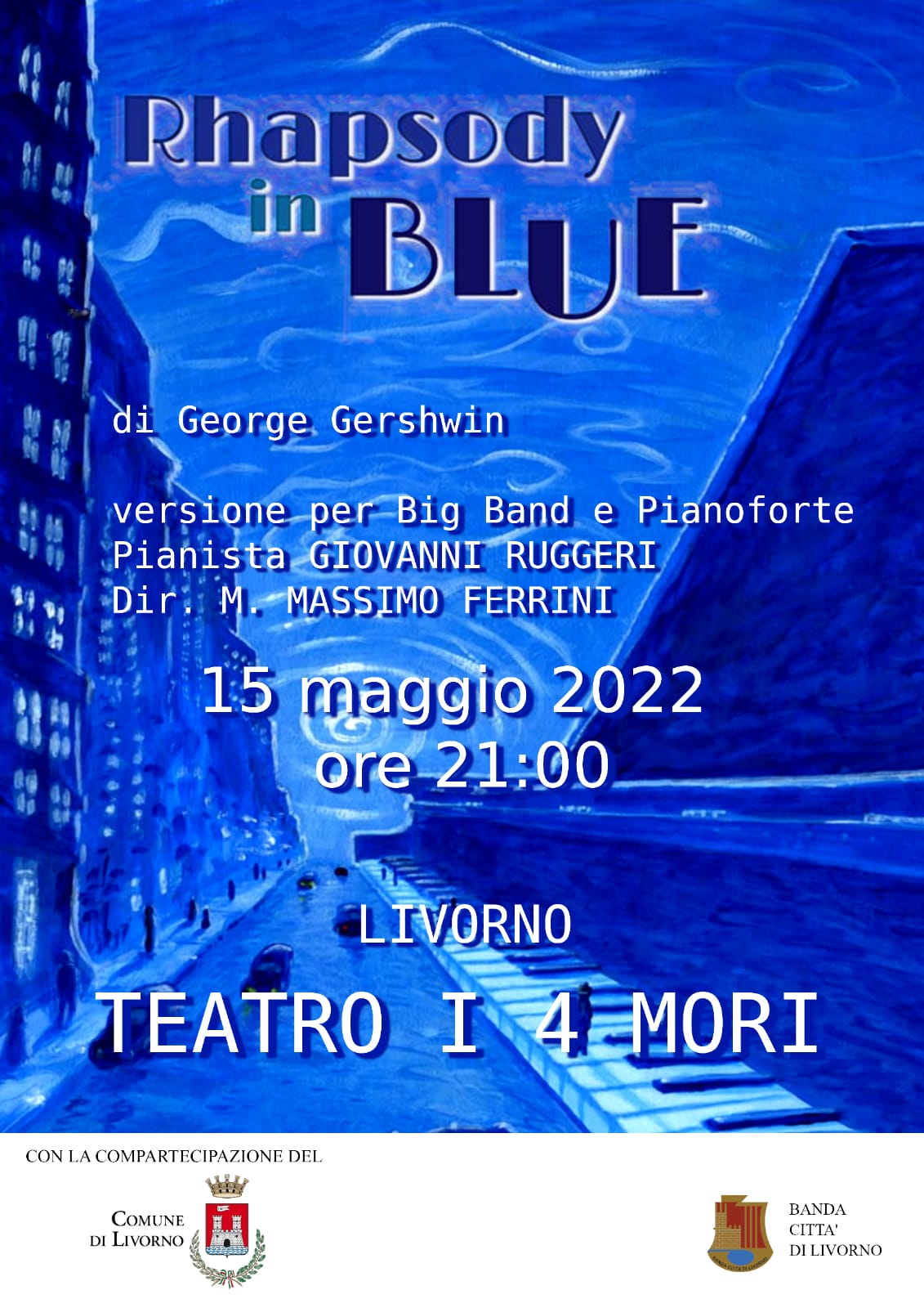 Il direttore d’orchestra della Banda Città di Livorno Massimo Ferrini, in collaborazione con il pianista Giovanni Ruggeri eseguirà il brano di George Gershwin "Rhapsody in blue", con la collaborazione dell’Orchestra Banda Città di Livorno, nella versione per Big Band e Pianoforte, versione molto vicina all’orchestrazione che l’autore utilizzò per la prima esecuzione.