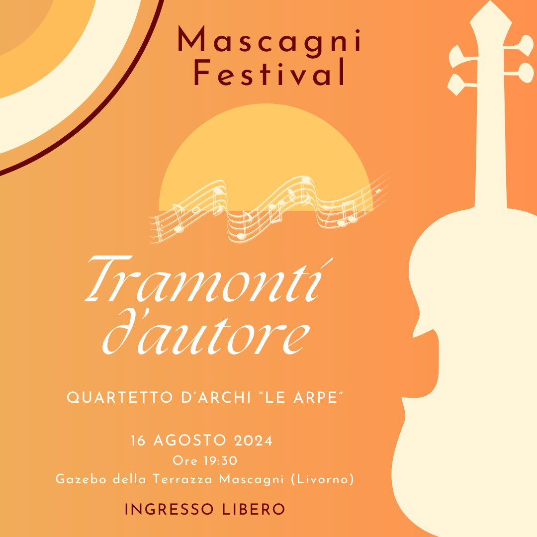 “Tramonto d’autore” è un momento musicale, da vivere al gazebo adiacente alla Terrazza Mascagni, che celebra il fascino del calare del sole attraverso concerti emozionanti e programmi musicali coinvolgenti. Il pubblico si potrà immergere – mentre il giorno si appresta ad addormentarsi lento nel mare livornese – in una varietà di esperienze musicali, eseguite da talentuosi musicisti del conservatorio Mascagni di Livorno.